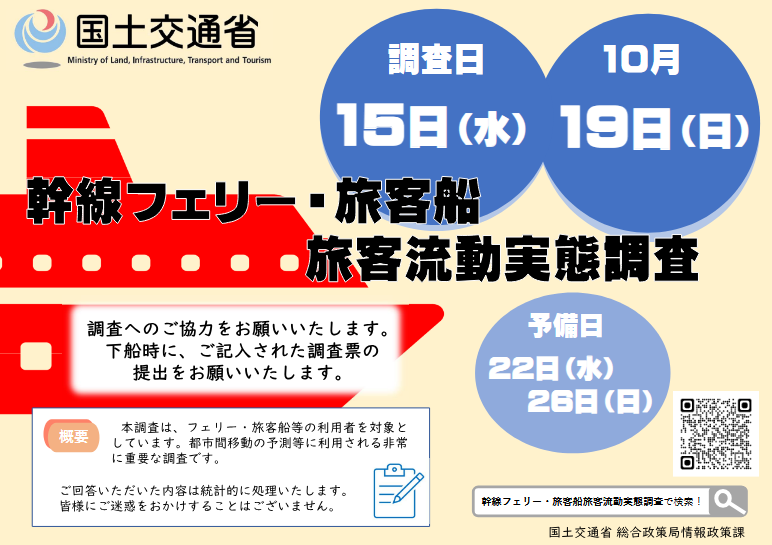 データを得ることを目的とし「幹線フェリー・旅客船旅客流動実態調査」が以下の日程にて